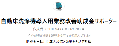 申請書の“いちばん難しい文章作成”をAIがサポートします 自動床洗浄機を導入して業務改善助成金を申請したいけれど、 申請書に書く文章がうまくまとまらない 交付要綱を読んでも難しい言葉が多くて不安 専門家に頼むと費用がかかる そんな悩みを持つ清掃事...